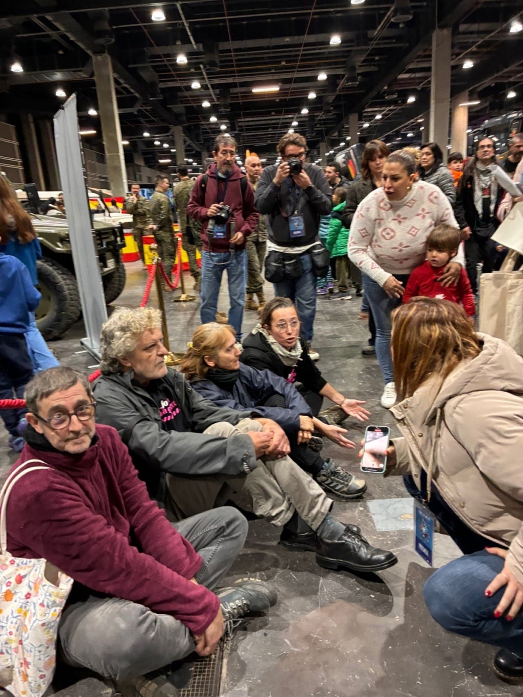 Enguany, la tradicional acció ha tingut més mèrit, ja que els serveis de seguretat de la Fira havien fet circular prèviament fotos dels activistes per a previndre qualsevol protesta, però l’esforç ha estat inútil i els antimilitaristes han aconseguit, un any més, burlar-ne la vigilància.