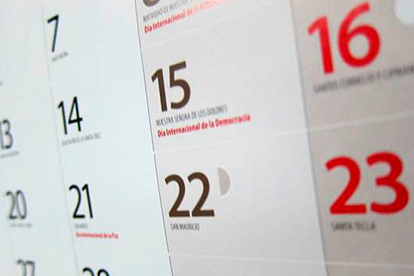 També seran festius no recuperables l’1 de gener, Any Nou; el 6 de gener, Epifania del Senyor; el 18 d’abril, Divendres Sant; l’1 de Maig, Dia del Treball; el 15 d’agost, Assumpció de la Verge; l’1 de novembre, Tots Sants; el 6 de desembre, Dia de la Constitució; el 8 de desembre, Dia de la Immaculada i el 25 de desembre, Nadal.