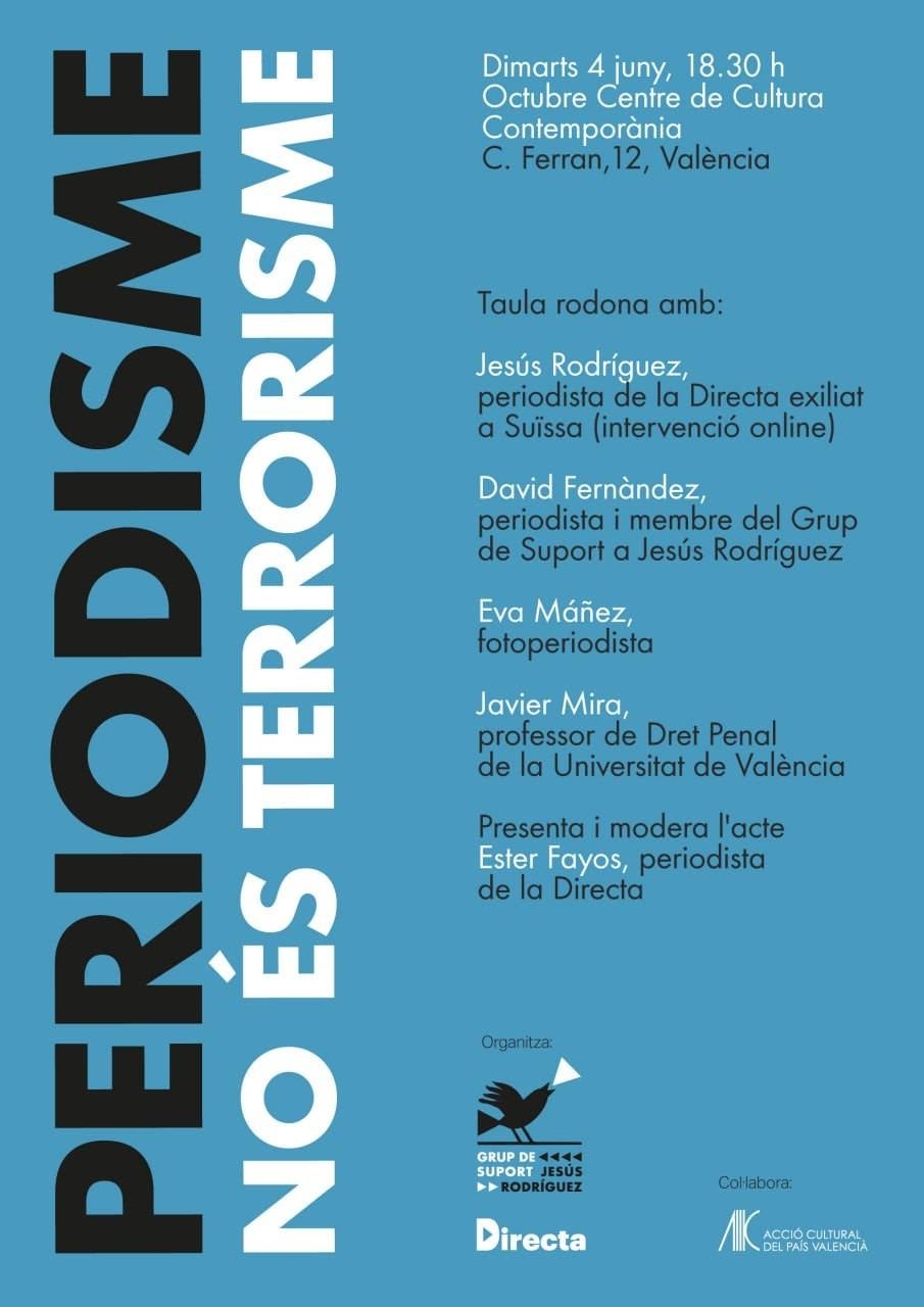 A València s’ha organitzat un acte de suport dimarts 4 de juny al Centre de Cultura Contemporània Octubre.