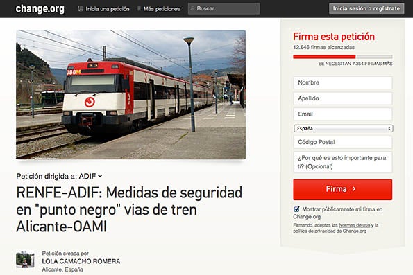 Dolores Camacho, la mare del jove mort, es desplaçarà fins a Madrid per fer lliurament de les rúbriques en la seu central de l’Administrador d’Infraestructures Ferroviàries (Adif). A més del seu fill, la núvia d’aquest, Joselyne, també va morir en el mateix contratemps, en octubre de 2012, quan tots dos es trobaven al voltant del lloc del succés ʹcercant localitzacionsʹ per a un dels seus projectes audiovisuals.