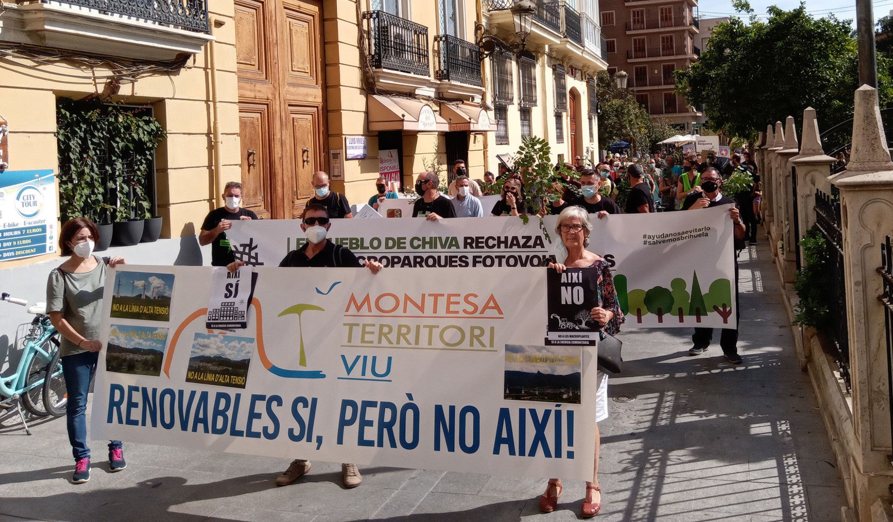 Protestes contra les macroplantes solars i eòliques arreu del País Valencià
