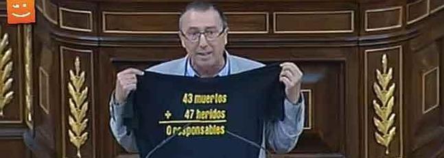 “Vergonya” és el sentiment que provoquen les “reaccions del PP valencià amb els familiars de l’accident”, ha dit Baldoví, exhibint en la tribuna una samarreta negra que ressalta les tràgiques xifres que va deixar el sinistre: “43 morts, 47 ferits”, dels quals hui hi ha “zero responsables”, ha dit.