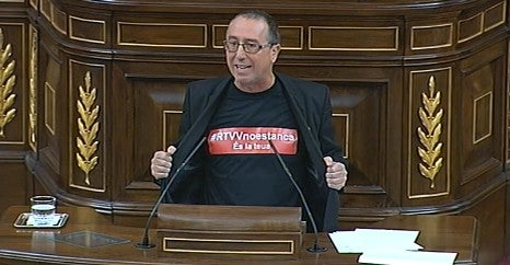 El diputat de Compromís al Congrés, Joan Baldoví, ha finalitzat la seua intervenció de hui fent una defensa de la continuïtat de RTVV. Amb una samarreta amb el lema de la passada multitudinària manifestació, ‘#RTVVnoestanca és la teua’, Baldoví ha manifestat el seu suport a totes les persones que aquestos dies, “lluiten perquè el PP no tanque un mitjà de comunicació que és de totes i tots els valencians, un mitjà de comunicació que parla en la meua llengua i per això vull que les meues darreres paraules siguen per a dir ben alt, ben clar i ben fort que RTVV no es tanca”.