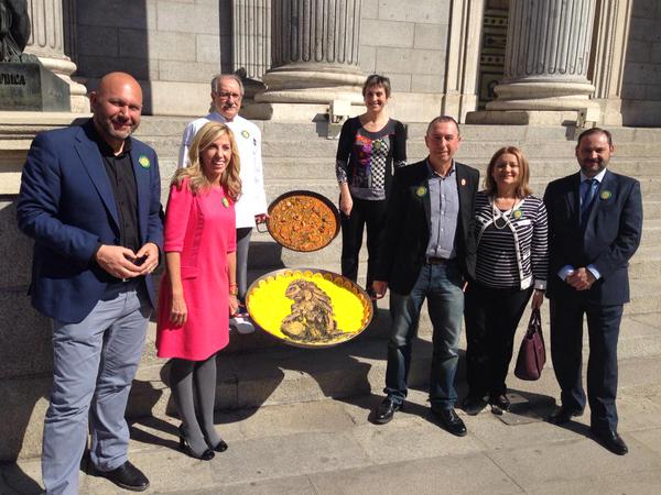 La intenció de l’humorista suecà, Eugeni Alemany, que la icona de la paella s’incloga en Wathsapp ha arribat a uns dels moments més àlgids, amb la fotografia dels diputats valencians al Congrés dels Diputats, on han posat amb dos paelles davant de la Porta dels Lleons del Congrés.