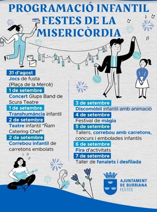 L’Ajuntament de Borriana (la Plana Baixa) ha elaborat una programació infantil amb motiu de les Festes de la Misericòrdia que inclou deu activitats, de les quals tres estan vinculades amb els bous. La primera, que va tindre lloc diumenge, va ser una «transhumància infantil», un eufemisme que s’usa sovint per a referir-se a les entrades d’animals per a menors. La segona, aquest dilluns, ha sigut un correbou amb carretons embolats, i la tercera, per a dijous, consistirà en un correbou amb carretons, concurs i embolades.