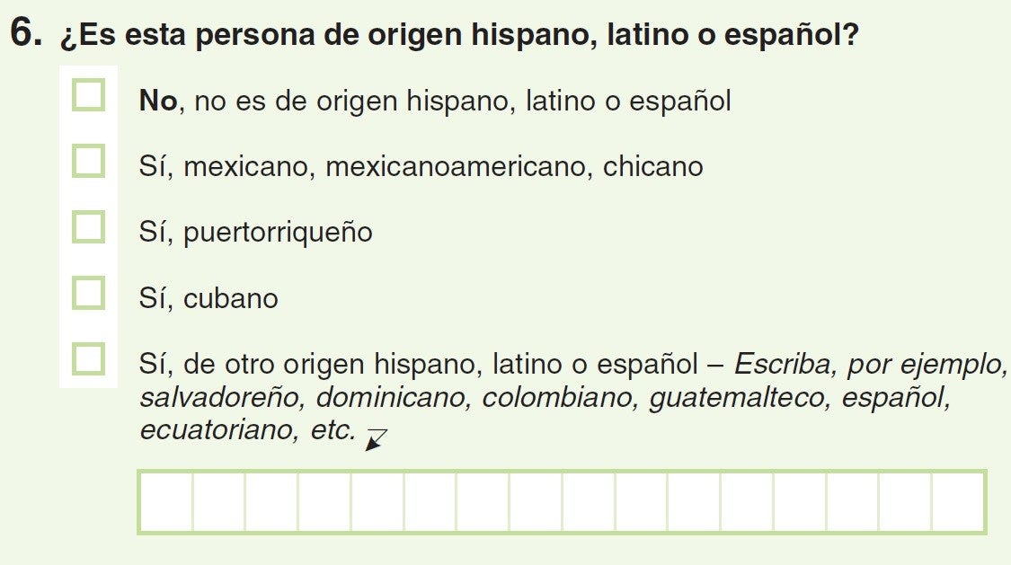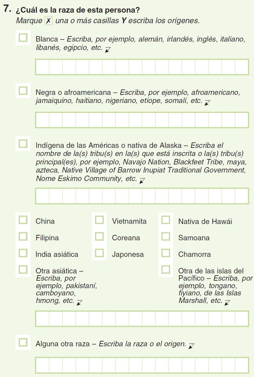 L’assumpte es posa més interessant quan arribem a les preguntes 6 i 7, on ens demana per la nacionalitat i raça. Sempre m’he preguntat per què volen saber la raça de les persones que hi habiten, i la resposta que obtinc és sempre la mateixa: per poder introduir polítiques antidiscriminació. Personalment pense que la no-discriminació racial comença per no preguntar ningú de quina raça es, i prou.