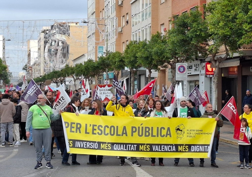 La vaga educativa convocada aquest dijous a tot el País Valencià pels sindicats STEPV, CSIF, CCOO i UGT s’ha concretat amb centres educatius sense activitat, per molt que es mantinguen oberts pel serveis mínims, i mobilitzacions i concentracions a com a mínim 15 poblacions, incloses Oriola, Torrevella, Elda, Xàtiva, Alzira, Gandia, València, Vall d’Uixó, Castelló de la Plana, Alacant, Elx, Acoi, Dénia, Port de Sagunt o Ontinyent. Aquesta és la primera cita d’un calendari de mobilitzacions que s’allargarà durant tot el curs si la Generalitat no s’avé a negociar.