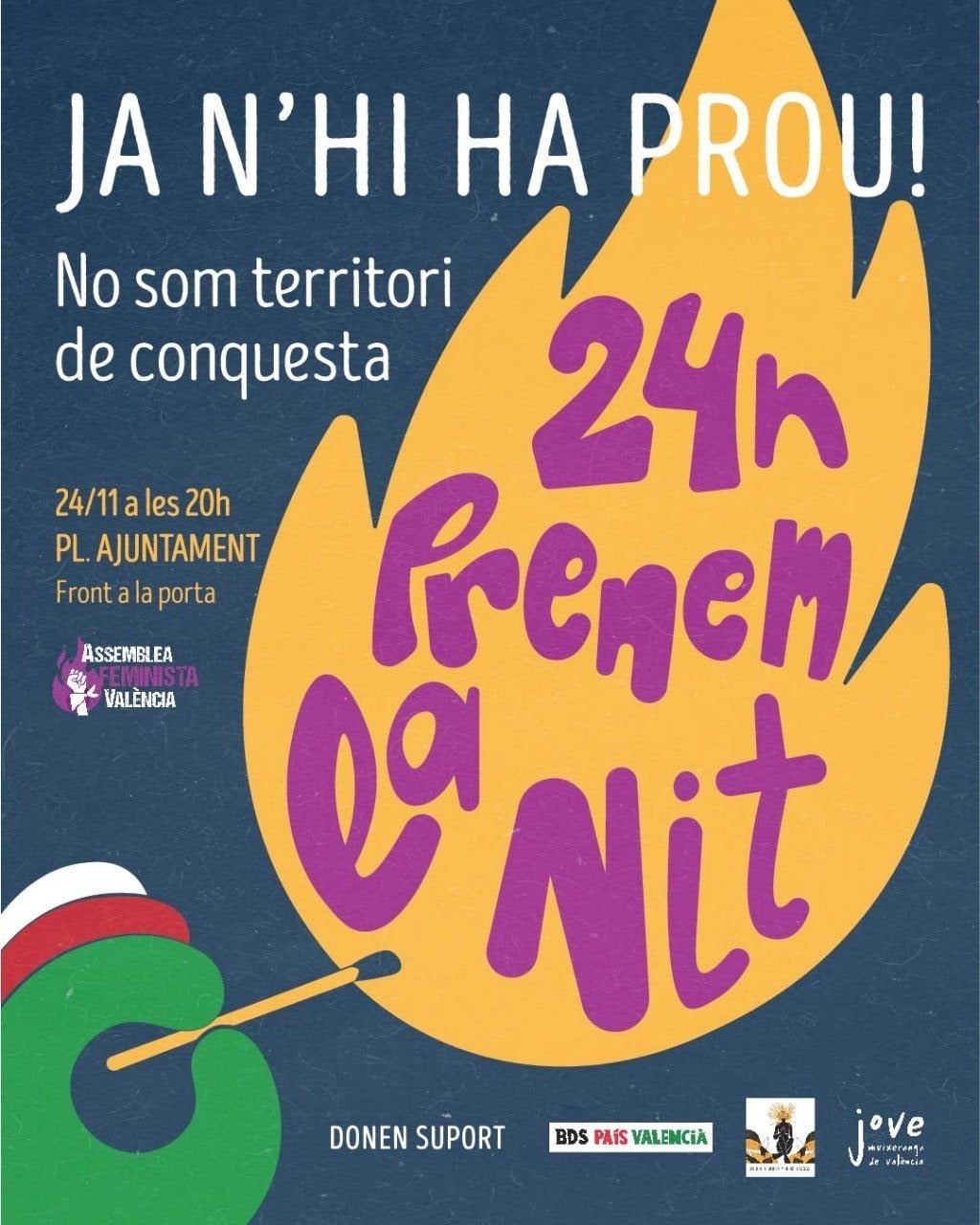 A la plaça del Tossal s’han repartit adhesius per a col·locar-les als carrers i denunciar que «les dones no són cap objecte». «Volem denunciar les violències, especialment les sexuals que es donen en el context d’oci nocturn i ocupar l’espai per a reivindicar que estem treballant i organitzant-nos per a generar espais segurs i generar xarxes de suport mutu per a no tolerar cap de les violències que es donen tant en l’espai públic com en el privat», han afirmat.