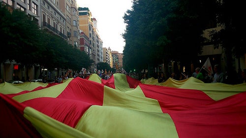 ‘Fem possible el canvi al País Valencià’. Davall d’aquest crit milers de persones han participat en la vesprada del 9 d’Octubre en la multitudinària manifestació convocada pel Col·lectiu 9 d’Octubre i que ha recorregut els carrers de València des de Sant Agustí fins al Parterre on s’ha llegit un manifest per part de Vicent Mifsud, president del Comité d’Empresa de RTVV, coincidint amb el 25è aniversari de l’inici de les emissions regulars de Canal 9, tancada per la Generalitat Valenciana ara farà un any.