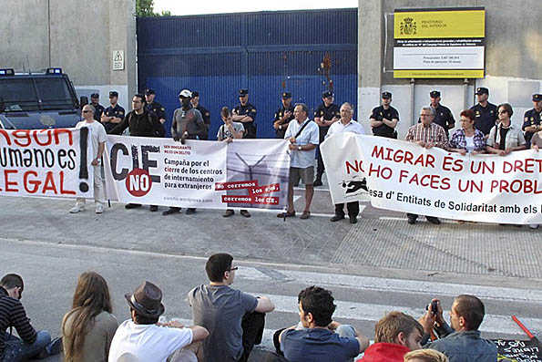 Des de fa més de dos anys es concentren a la porta d’aquest espai que, com els altres huit que hi ha a l’Estat espanyol, vulnera la Declaració Universal dels Drets Humans i la dignitat humana.