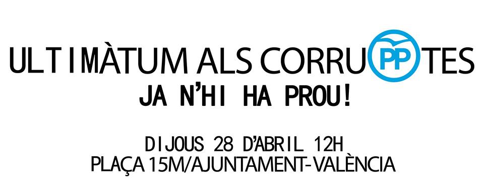 Finalment, fan una crida a la ciutadania valenciana a acudir a la concentració per expressar el seu rebuig a la corrupció i per exigir les dimissions, de tots els seus càrrecs, de les persones investigades.