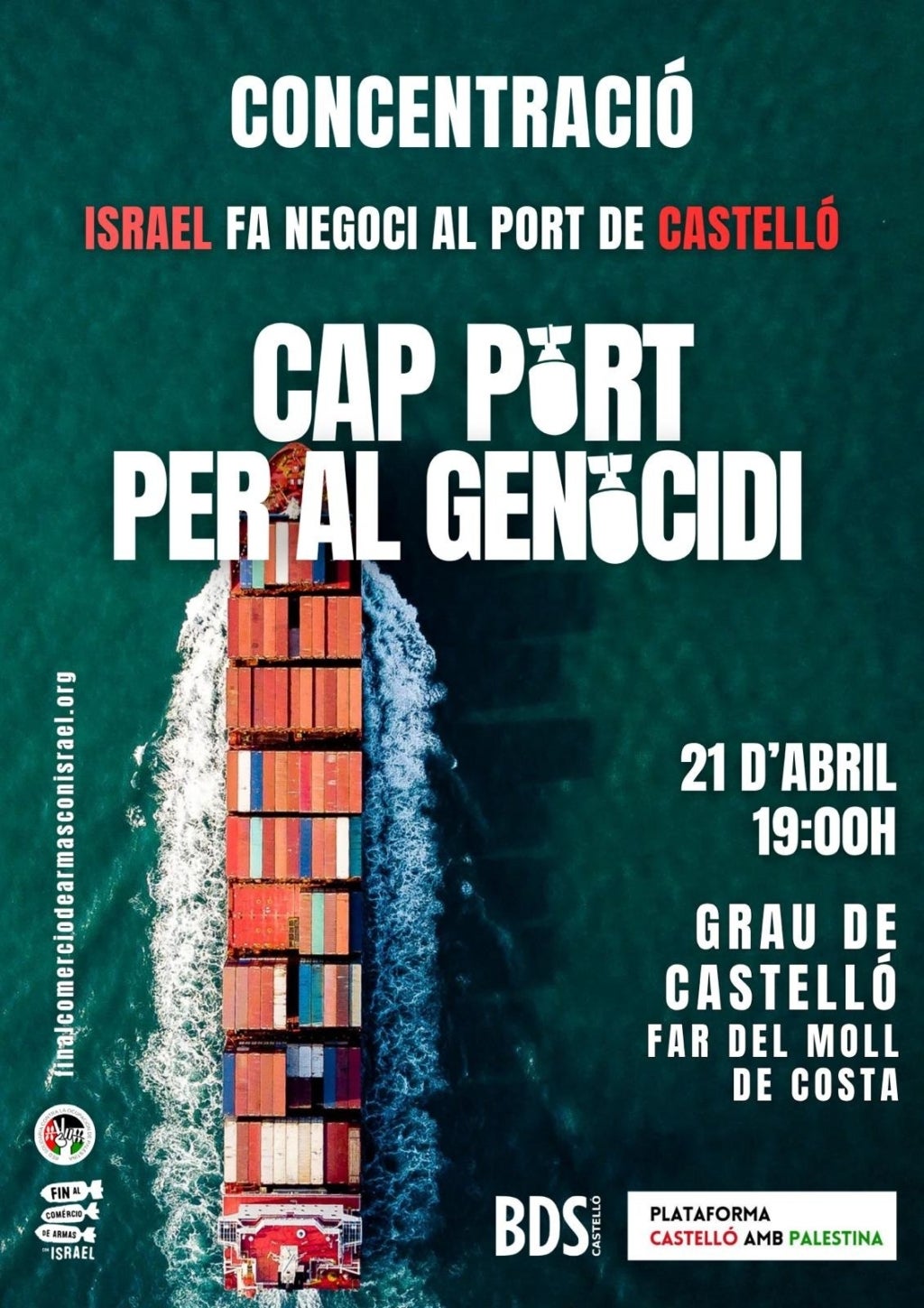 “L’objectiu és mostrar el nostre rebuig davant aquesta complicitat del port de Castelló amb una empresa implicada en crims de guerra, crims de lesa humanitat i genocidi”, conclouen les entitats convocants.