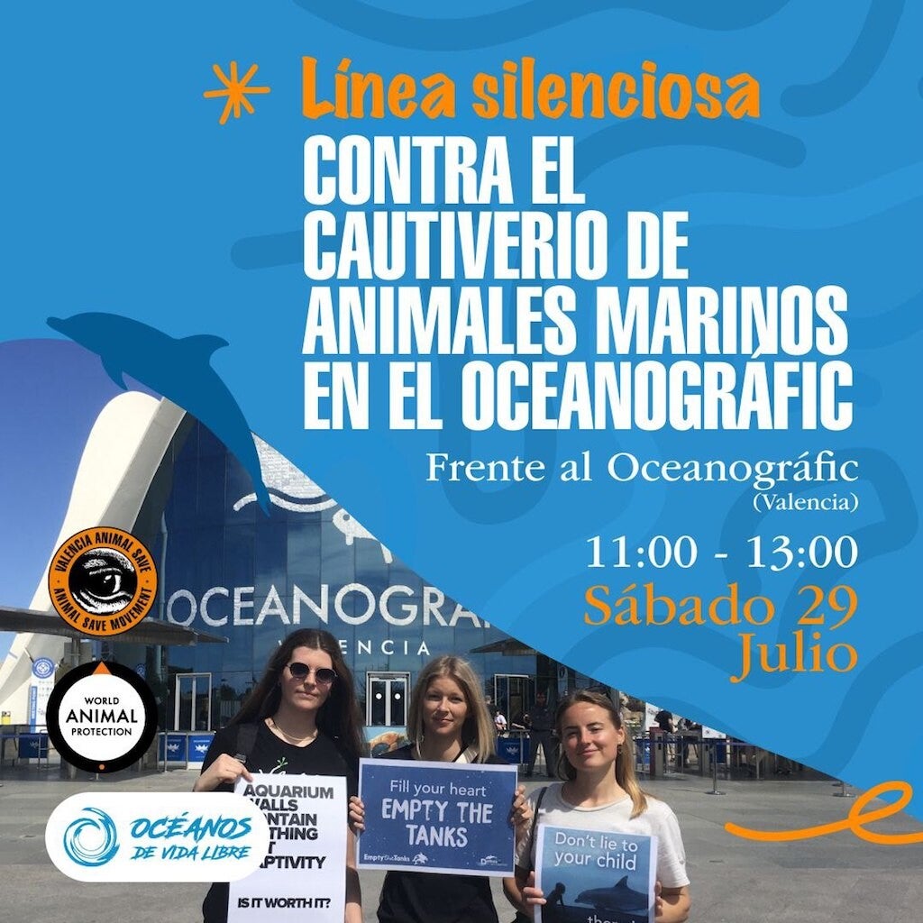 Un grup d’activistes protagonitzarà aquest dissabte, 29 de juliol, a les 11 h, una protesta silenciosa a les portes de l’Oceanogràfic de València per a sensibilitzar els visitants sobre el sofriment dels animals en captivitat.