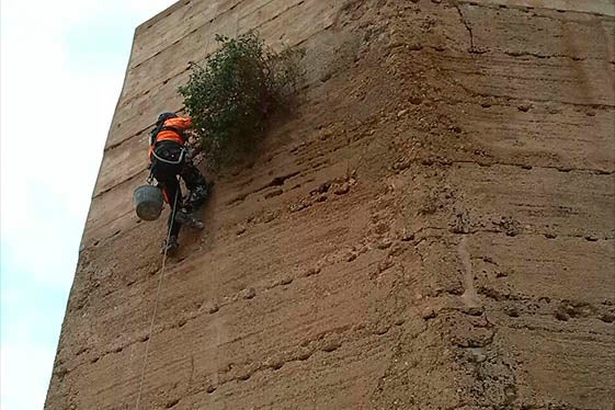 Davant aquesta deterioració, la Regidoria de Patrimoni dirigida per Amparo Jover ha decidit actuar d’urgència. La intervenció ha consistit en l’eliminació de la vegetació mitjançant el serrat de la part aèria. També s’han llevat les arrels i el seu taponament mitjançant una mescla de calç, arena i grava per a reposar els desperfectes ocasionats per les plantes.