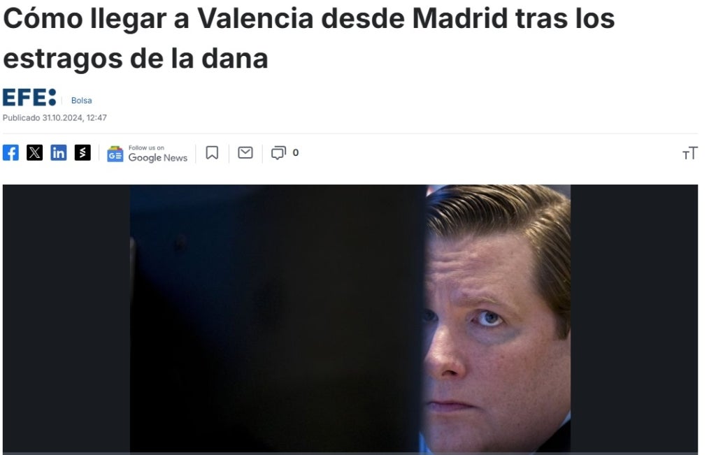 Aquest dijous l’agència de notícies EFE ha emès un teletip titulat «com arribar a València des de Madrid després dels estralls de la DANA». La notícia ha sigut replicada per diversos mitjans, com ara La Razón, Valencia Plaza, Telemadrid o El Periódico de España.