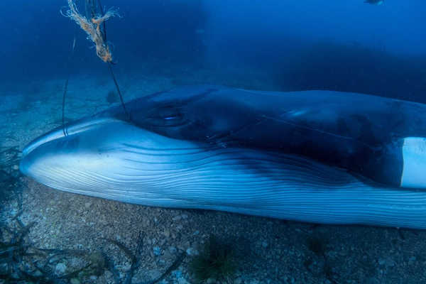 A set metres de profunditat prop de la Cova del Llop en Xàbia, en una primera immersió, el guardacostes Guadalupe amb Toni Martínez de patró, el mariner Josep Cardona Flores i dos membres del Jubi-Sub van fer una inspecció i revisió general de la cria de rorqual d’aleta blanca trobada morta, segons s’explica al Facebook de Jubi-Sub.