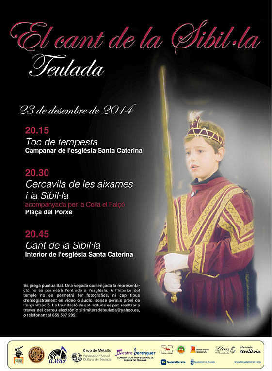 El Cant de la Sibil·la en l’ambient nadalenc es va fer popular a l’Edat Mitjana i se’n conserven molts manuscrits i diverses versions musicades. La versió que es canta a Teulada procedeix d’un breviari de 1533 de la Seu de València, amb l’adaptació musical de Bartomeu Càrceres conservada al Cançoner de Gandia, consta d’una tornada de dos versos, que canta el cor, i deu estrofes de quatre versos que canta la veu blanca que fa de sibil·la, entremig s’interpretaran diversos interludis musicals de compositors valencians del Renaixement i el Barroc.