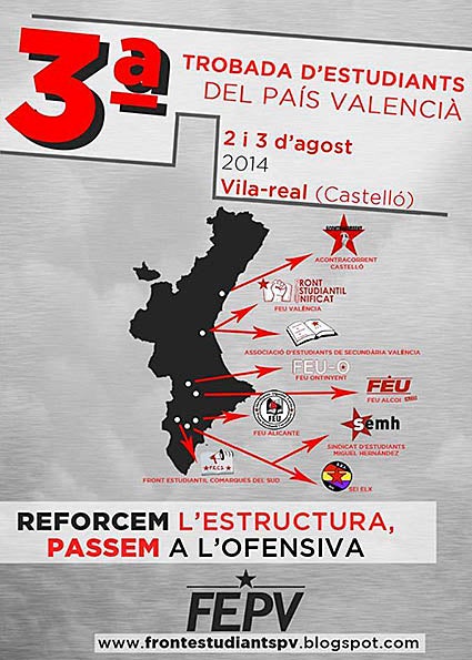 Després de la segona Trobada del FEPV en agost de 2013, on es va establir el marc ideològic d’aquesta coordinadora per a cohesionar els col·lectius estudiantils del País Valencià, es va iniciar el treball conjunt davall eixes premisses establides l’any passat en Benimaclet.