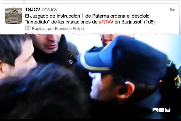 La denúncia presentada segueix a l’acció dels treballadors de RTVV d’impedir aquesta matinada accedir els liquidadors al centre de control on estan els cables per a tallar les emissions, i han denunciat que se’ls ha intentat impedir que gravaren aqueixes imatges.