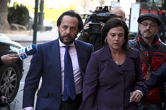 Pablo Crespo (al fons a l’esquerra) conversa amb el cap de l’entramat Gürtel, Francisco Correa (a la seva dreta). Foto: ACN.