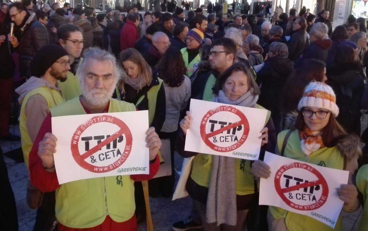 La societat civil, els sindicats, agricultors i activistes d’organitzacions ciutadanes, culturals i polítiques de tot Europa van eixir al carrer amb l’objectiu de parar el CETA, el Tractat Econòmic i Comercial entre la Unió Europea i Canadà, també conegut com el “TTIP canadenc”.