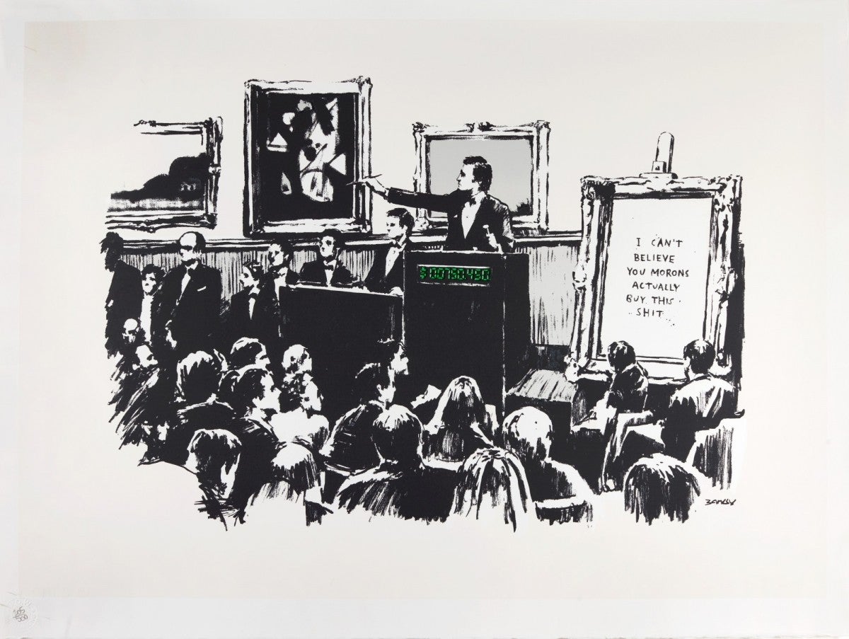 El passat 8 de març, un NFT que representa l’obra Morons, del famós artista urbà Banksy, es va vendre per quasi 40.000 dòlars. El NFT va ser creat per un grup de criptoinversors que va comprar el quadre (físic) per uns 100.000 dòlars el mes de febrer, el va tokenitzar i després el va cremar. Morons (idiotes, en anglès) és una pintura que satiritza la indústria de l’art i que representa una bulliciosa subhasta per un llenç emmarcat i amb unes paraules en majúscules que diuen: «No puc creure que aquests idiotes compren aquesta merda».