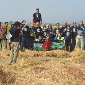 Entre les accions de solidaritat dutes a terme per la delegació d’Esquerra Unida, per a recaptar de primera mà informació sobre la situació de la població Palestina en la franja de Gaza, es troba la realitzada amb els camperols de Kuza’a, els camps dels quals es troben a uns 70 metres de la tanca fronterera israeliana en els territoris ocupats.