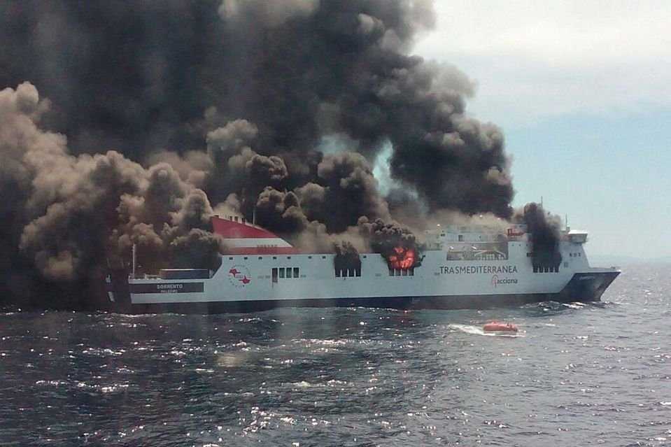 Des del Ministeri de Foment han precisat que el Sorrento, de la companyia Atlantica CSPA Di Navigazione, ha sol•licitat a les 13.50 hores assistència al Centre de Coordinació de Salvament Marítim (CCS) a Palma ja que patia un incendi a bord quan es trobava a 15 milles a l’Oest-sud-oest de l’illa de Dragonera i a 17 de Mallorca.