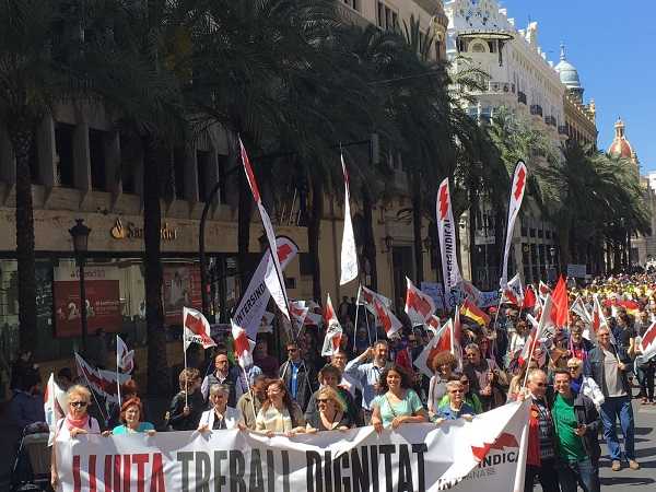 Per altra part, des del sindicat es reivindica que els partits polítics que van a concòrrer a les pròximes eleccions “es comprometen” amb la ciutadania a derogar al reforma laboral, la reforma de les pensions, la llei mordasa i la LOMCE i a posar en marxa polítiques d’esquerres al servei de la classe treballadora i de les classes populars, “així com a treballar per l’establiment de marcs nacionals de relacions laborals i de protecció social i un finançament just pel País Valencià”.