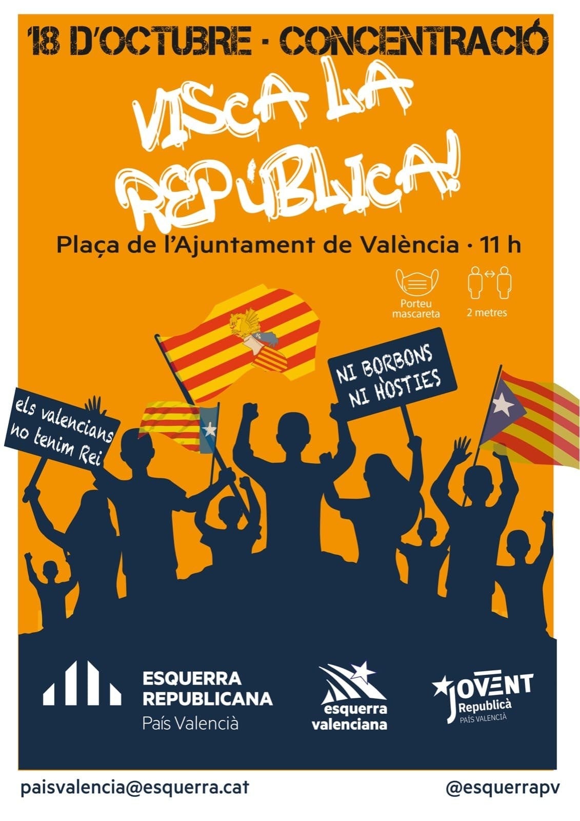 Per tot això, la Comissió d’Enllaç de la Trobada Estatal per la República ha acordat convocar el 18 d’octubre una mobilització estatal unitària, descentralitzada en els territoris, amb les necessàries mesures sanitàries de protecció, i amb els següents lemes: ‘El rei emèrit a la banqueta / Inviolabilitat no / Visca la República ‘.