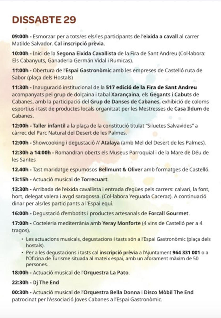 Amb una programació que uneix tradició, formació i innovació, la Fira de Sant Andreu de Cabanes reforça el seu paper com un esdeveniment clau per al sector agrari i per al desenvolupament econòmic i cultural del municipi.