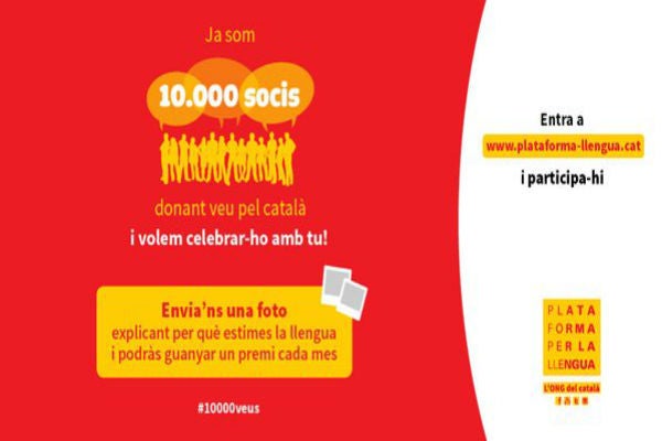 La Plataforma per la Llengua ha arribat als 10.000 socis i no s’amaguen de declarar la seua joia, “estem contents, molt contents de tenir ja 10.000 persones donant suport a la tasca de la nostra entitat”. Per a celebrar-ho, han obert una pàgina web per a omplir-la de missatges i fotografies de totes aquestes persones i d’altres que vulguen sumar-s’hi i expressar amb el lema: “Ho dius en català. Ho vius en català”.