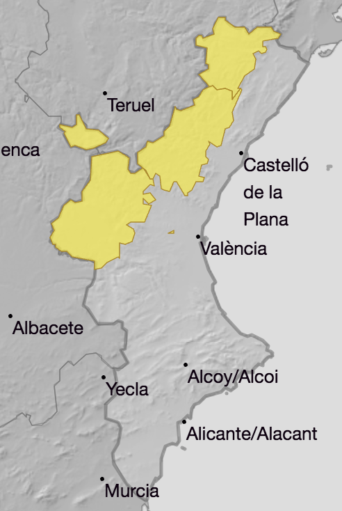 A partir de mig matí, l’Aemet activarà l’avís groc per pluges intenses, amb la possibilitat de deixar fins a 30 litres en una hora, a la meitat nord del País Valencià. I avís per tempestes localment fortes als Ports, l’Alt Maestrat, l’Alcalatén, l’Alt Millars, l’Alt Palància, els Serrans, el Racó d’Ademús i la Plana d’Utiel-Requena.