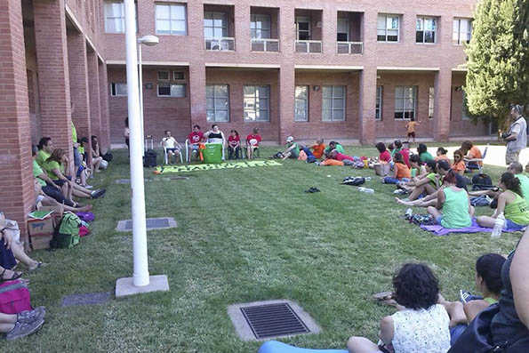 Ja de vesprada, després de l’assemblea de l’acampada, en què es valora la jornada, es reparteixen les tasques del dia i es preveu l’organizació de la següent jornada, l’actuació de Trobadorets de Castelló ompli de música i alegria els jardins de Conselleria d’Educació. Actuació a la qual seguirà el taller de paracaigudes per als xiquets i xiquetes.