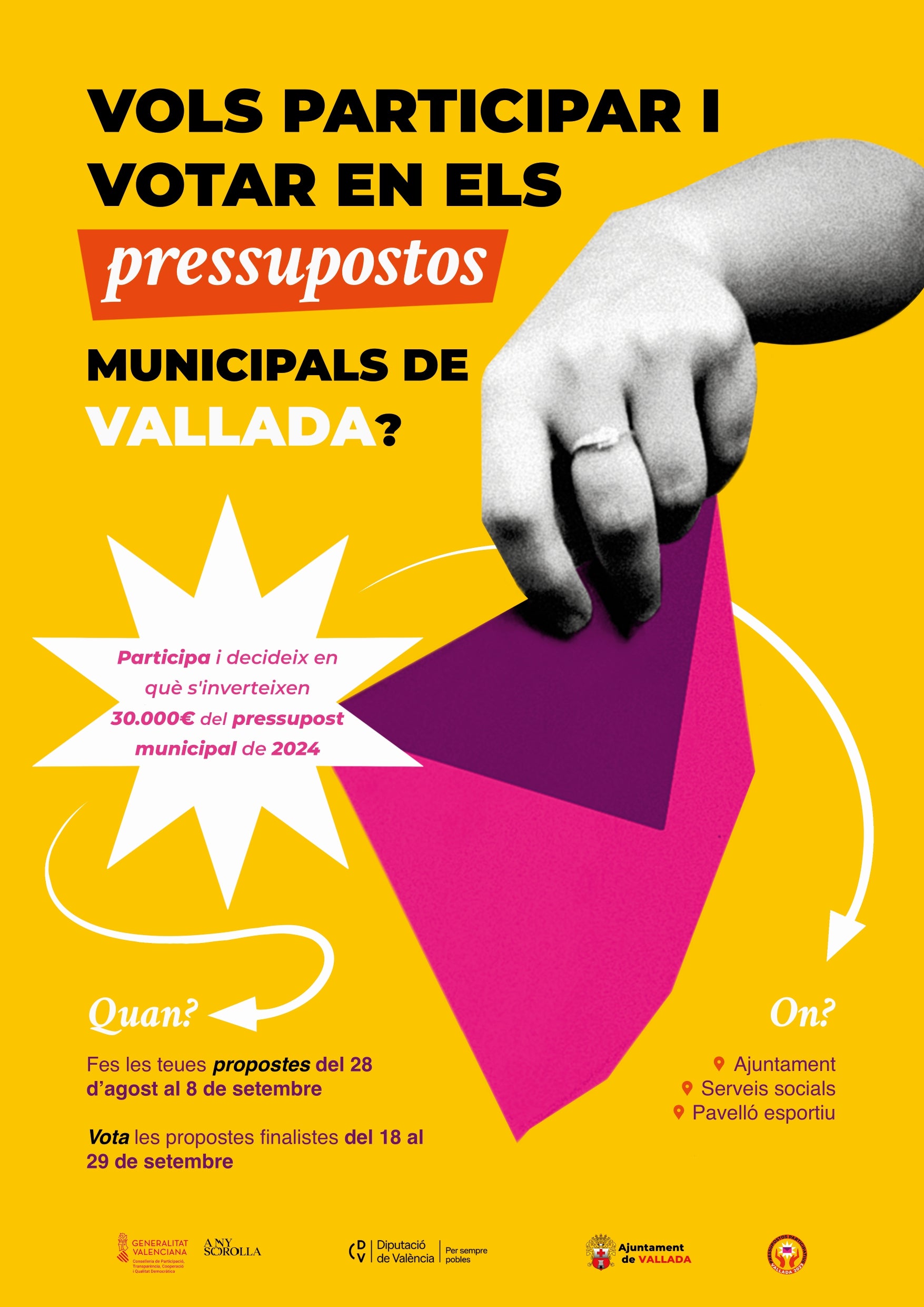 L’Ajuntament de Vallada (la Costera) ha posat en marxa un procés participatiu perquè la ciutadania decidisca una partida pressupostària del 2024.