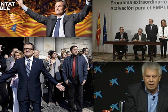 Els dos sindicats majoritaris porten fent un paperot des de fa anys, però durant la legislatura de Mariano Rajoy han aconseguit la sublimació de la seua labor com a actor necessari per a la decadència del sindicalisme institucional que CCOO i UGT representen. La fotografia en la qual Cándido Méndez i Fernández Toxo apareixen asseguts signant les engrunes electorals que el PP necessitava escenificar i darrere la patronal i el Govern en posició de superioritat va ser la rúbrica a aqueixa actitud generalitzada durant els últims anys.