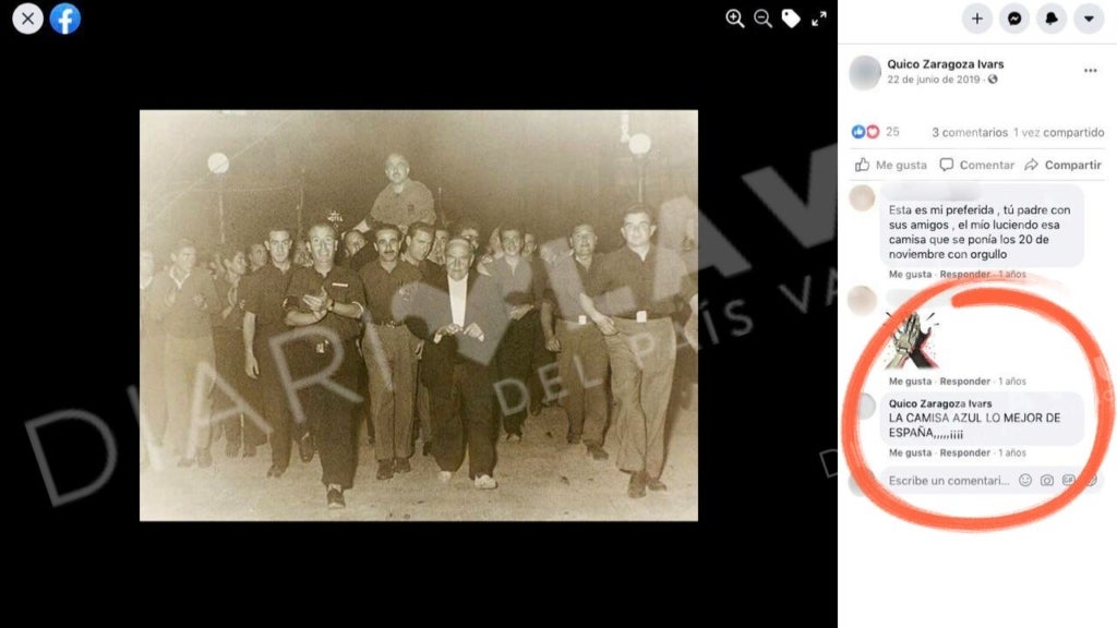 Francisco Zaragoza, més conegut com Quico, empra simbologia feixista pronazi amb samarretes de la División Azul en les seues xarxes socials. En una de les imatges que ha penjat se li pot veure amb una samarreta en honor al grup de l’exèrcit franquista que va lluitar en el bàndol d’Adolf Hitler en la Segona Guerra Mundial. A més a més, en imatges de les mateixes xarxes socials se’l pot veure amb familiars amb l’ús continuat de la bandera preconstitucional franquista, utilitzada pel règim. També ha publicat imatges amb polos que tenen el logo de la creu de borgonya, símbol usat per l’extrema dreta. I si amb les imatges i les fotos no és suficient, en alguns dels comentaris de Facebook fa apologia del falangisme: “La camisa blava, el millor d’Espanya!”.