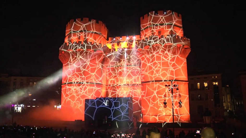 A les 20h a les torres dels Serrans, aquelles portes que antigament rebien o acomiadaven els visitants que entraven des del nord, ara, revestides de llum reben i anuncien que “València està en Falles”. L’esdeveniment és el primer multitudinari i compta amb un preàmbul amb videoprojeccions sobre les mateixes torres amb llums, so, música, etc.