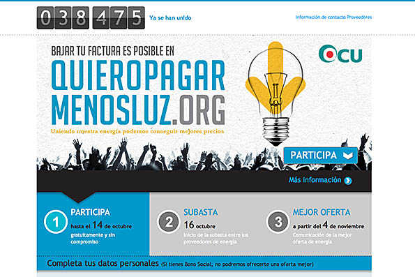 Es tracta d’una iniciativa que cerca “una millor tarifa de llum i gas per a la major quantitat possible d’usuaris”, segons expliquen des de l’organització. Per a açò han creat una plataforma digital en la qual qualsevol persona pot apuntar-se de forma gratuïta i donar poders a l’OCU per a la subhasta del 16 d’octubre i que aquesta accepte l’oferta de la companyia que propose un major estalvi.
