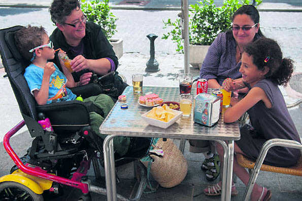 De la mateixa opinió són Carles, 49 anys, zelador, i Jacint, 51 anys, infermer. Sostenen que a Catalunya en cap moment s’han sentit diferents a la resta de parelles. Amb tant sols 20 dies de vida se’n dugueren a casa al petit Arnau, que té síndrome de Down, fet que encara hui, amb set anys, li impedeix parlar. La seua germana Nora, de 3 anys, pateix cavernomatosi múltiple familiar, una malformació cerebral que li provoca importants episodis d’epilèpsia.