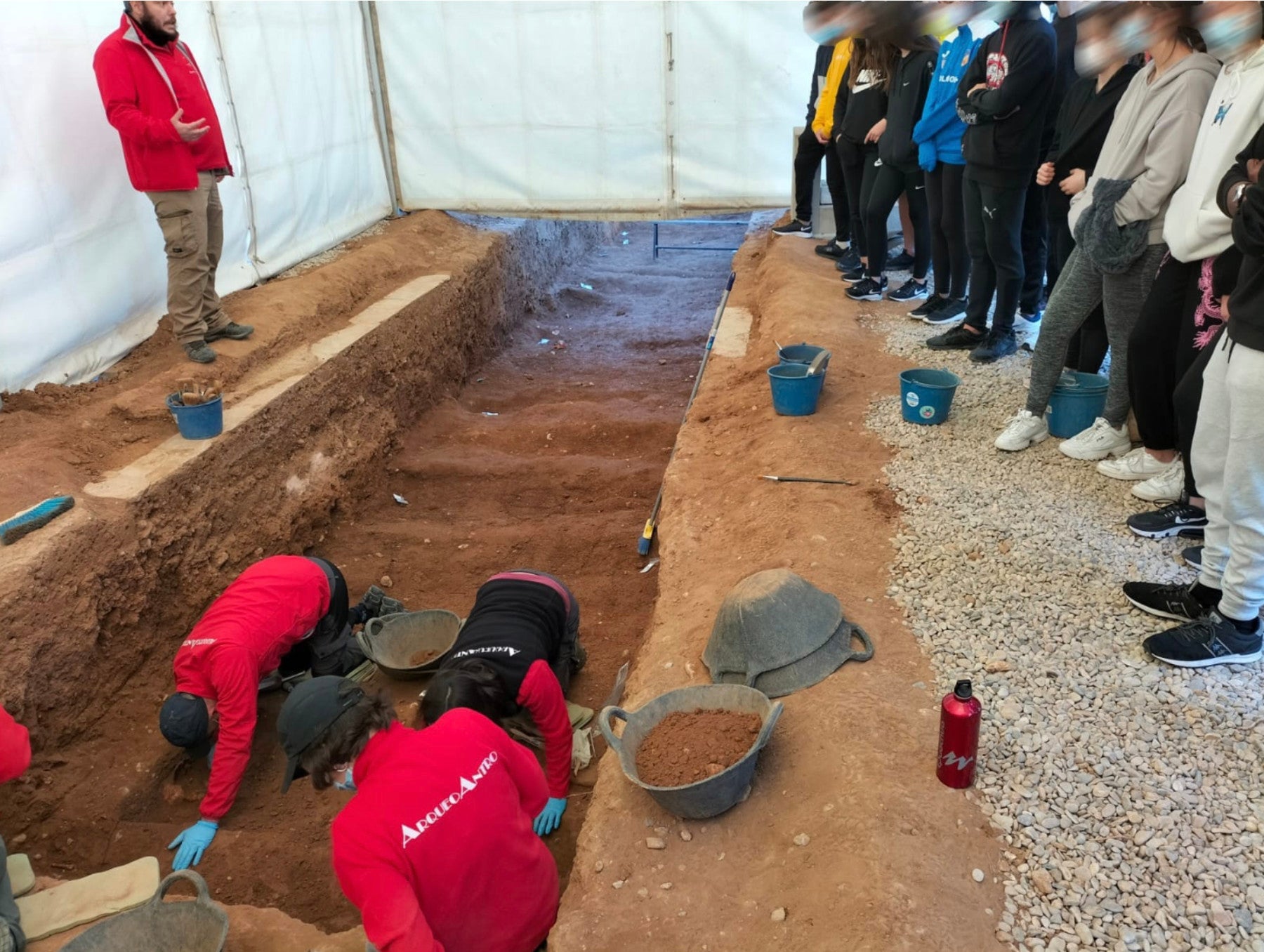 Finalment, a l’espai de les exhumacions, l’alumnat ha observat els treballs dels arqueòlegs i antropòlegs de l’empresa Arqueoantro i han pogut plantejar in situ les preguntes que han considerat oportunes.