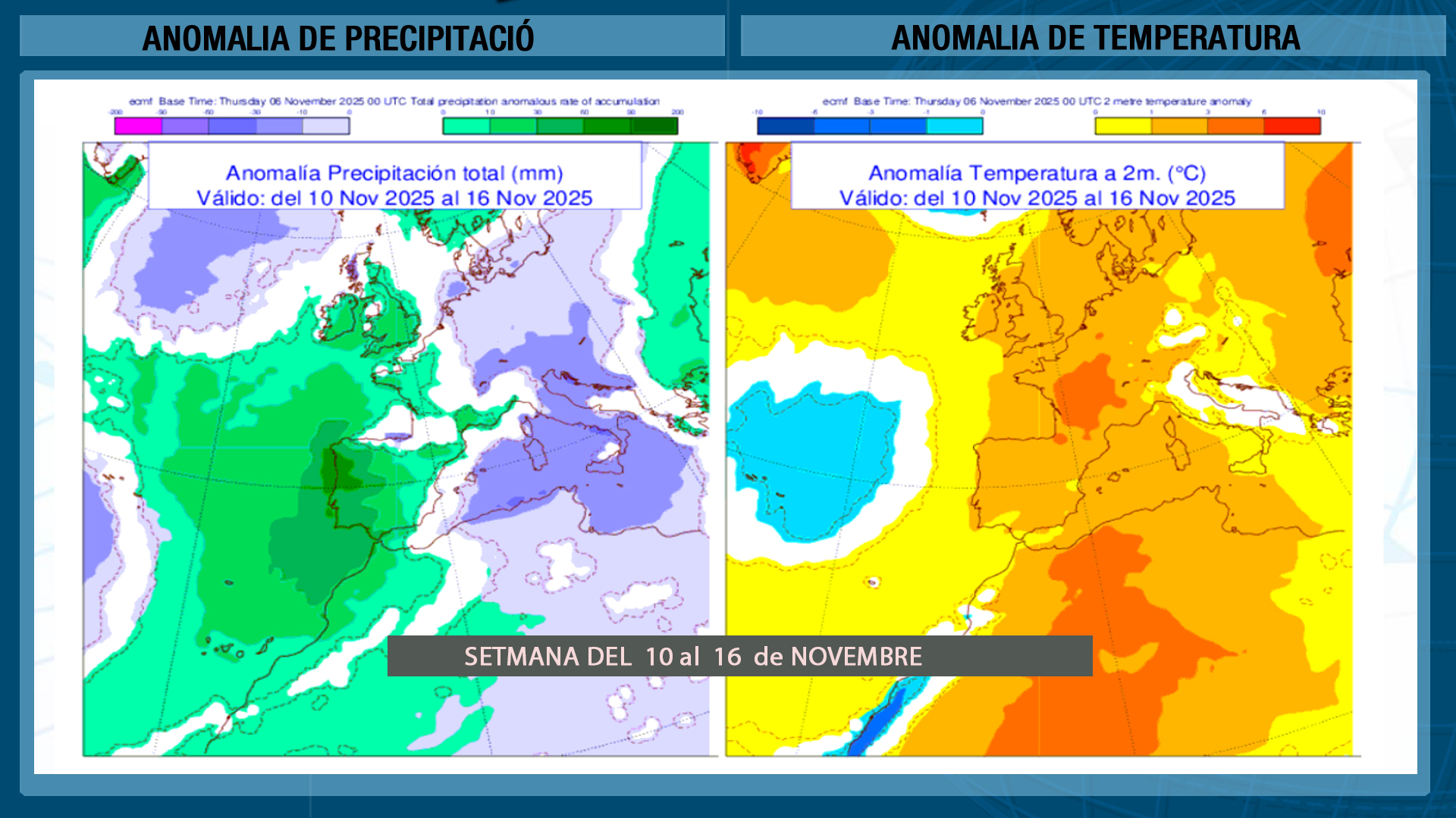 L’inici de setmana estarà marcat per la calma i el domini del xaloc. L’ambient serà humit, amb presència de núvols baixos a primera i última hora del dia, i temperatures que podran superar els 24 °C a les zones litorals. Dimarts i dimecres, el cel continuarà enteranyinat, però sense pluja i amb una sensació tèrmica molt suau. A partir de divendres, amb el retorn del ponent, el vent girarà de nou a l’oest i les temperatures podrien pujar encara més a la costa abans d’un possible descens el cap de setmana.