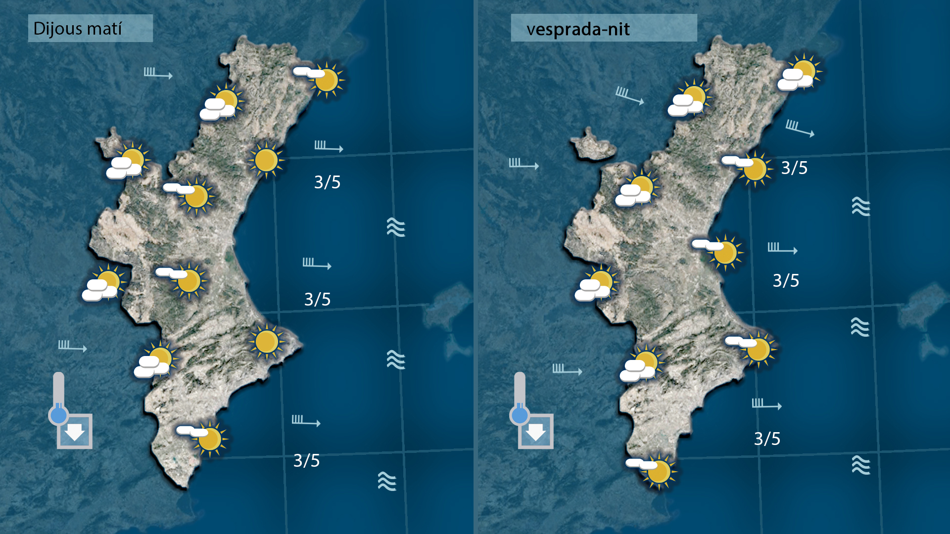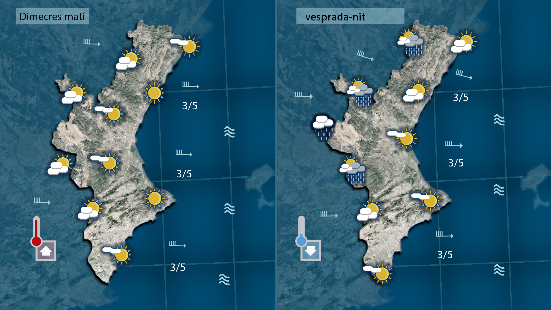 Al sud, amb avís groc, el vent també serà protagonista, encara que amb menys intensitat que al centre. El cel presentarà intervals de núvols i no es descarta algun ruixat molt feble a l’interior. Les temperatures continuen altes per a l’època, especialment durant la nit. Divendres, amb l’arribada del front, l’ambient serà més fresc i variable.
