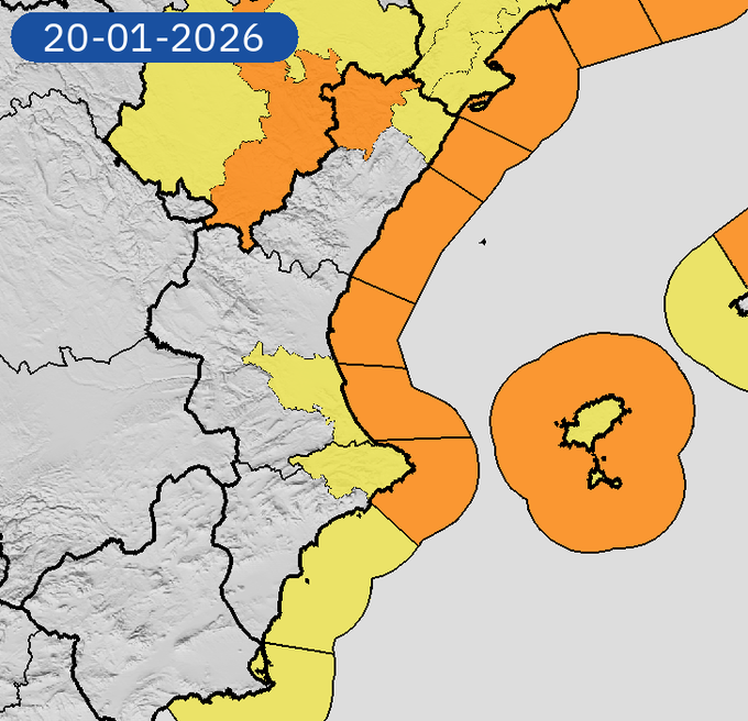 Aquest temporal marítim serà més intens dimarts, amb alerta taronja al litoral, des del Maestrat fins a la Marina, i alerta groga a les comarques del sud del País Valencià. Les precipitacions seran generalitzades, localment fortes o persistents al nord del territori en la primera meitat del dia, i durant la segona meitat a l’Horta Sud, la Ribera, la Safor i la Marina, les comarques més exposades als temporals de gregal.