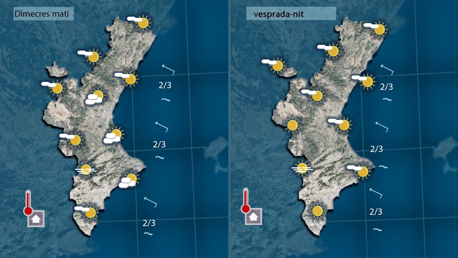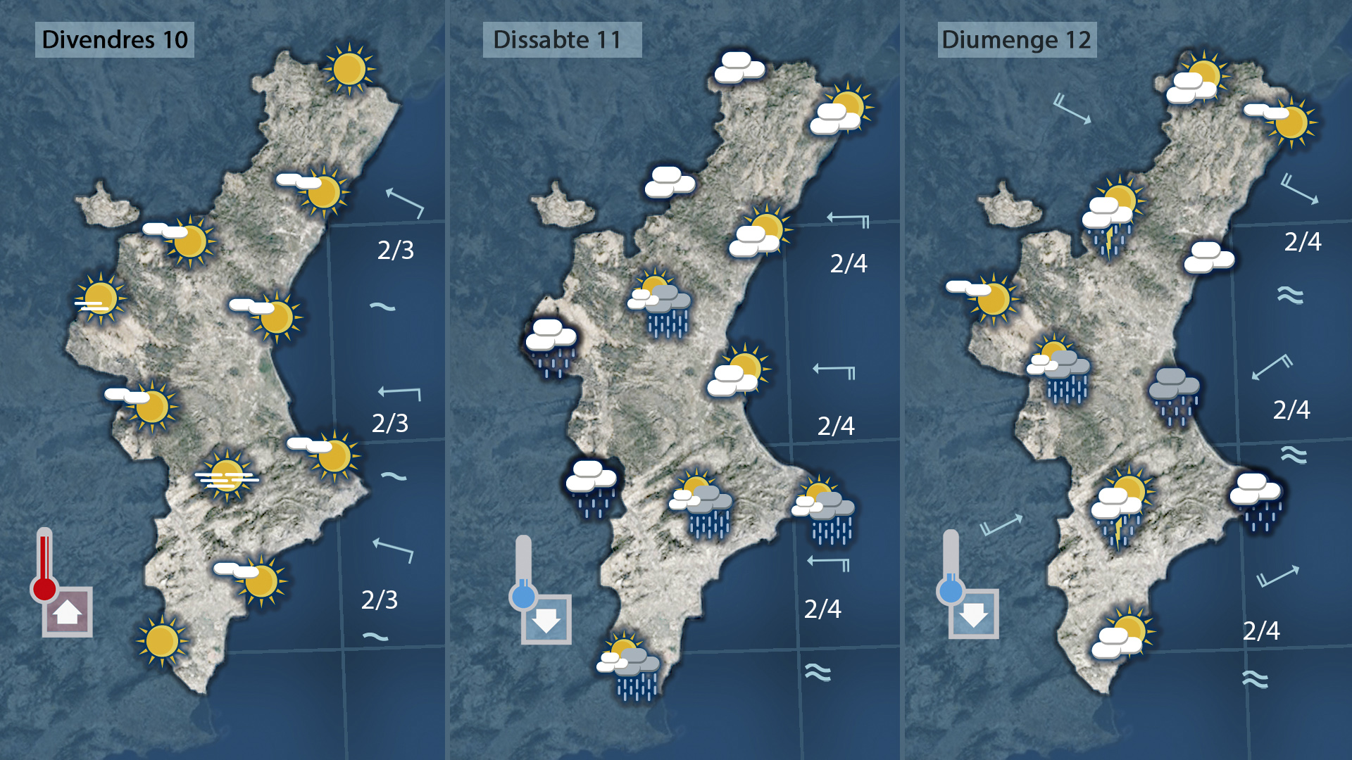 El País Valencià enceta una jornada marcada per la presència de núvols alts i un ambient lleugerament tèrbol. Tot i això, l’estabilitat continua sent la tònica dominant, amb temperatures en ascens gràcies a l’arribada d’una massa d’aire càlida.