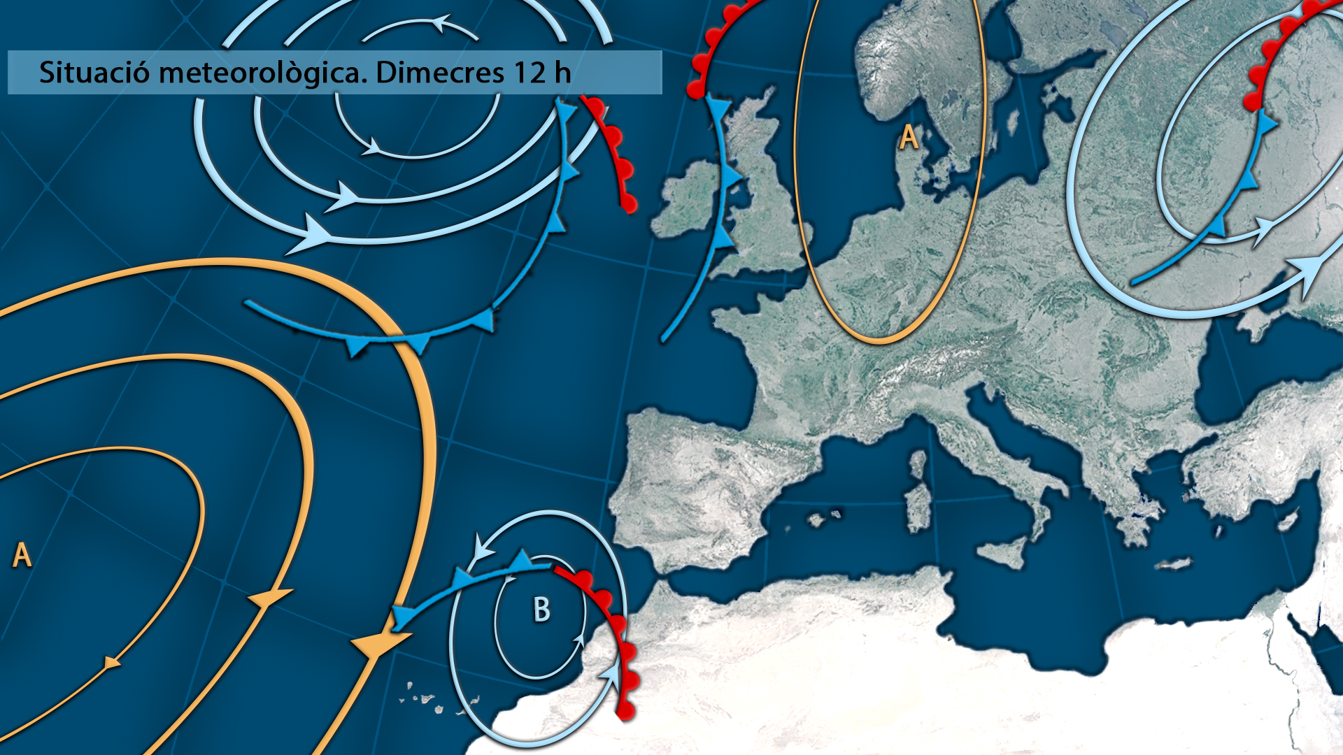 De cara a dissabte, caldrà estar pendents de la borrasca situada al sud-oest de la Península, que podria portar pluges i un descens notable de les temperatures.