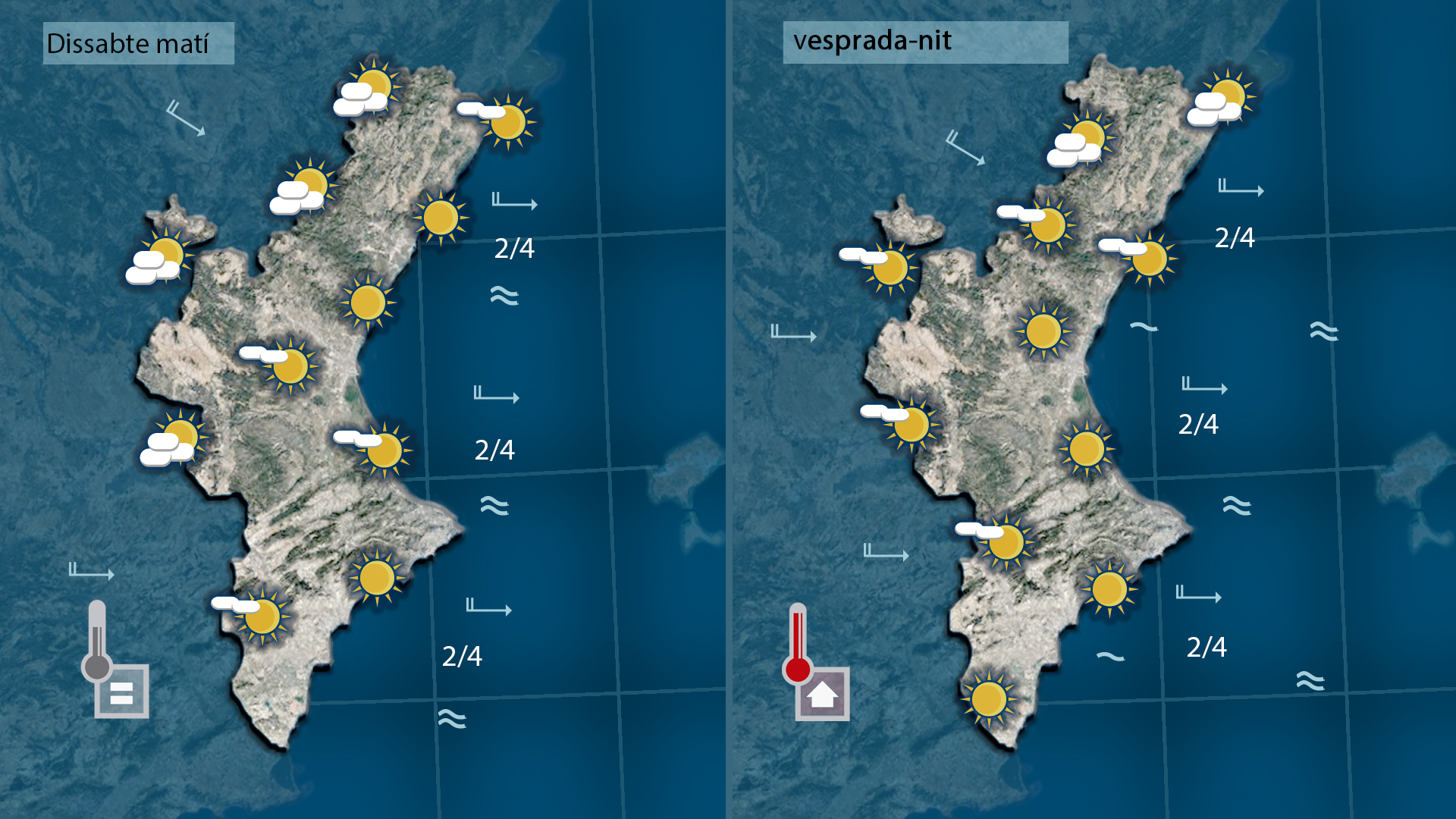 El sud viurà un cap de setmana de contrastos. Hui l’ambient serà fresc però estable. Dissabte el ponent deixarà un oratge relativament suau. Diumenge, amb més núvols, podran registrar-se plugims a la costa i ruixats a l’interior. Dilluns, amb el reforç del mestral, baixaran les temperatures i no es descarta alguna nevada testimonial a la muntanya al voltant dels 1.000 metres. Dimarts, amb el gir a ponent, les temperatures tornaran a pujar.