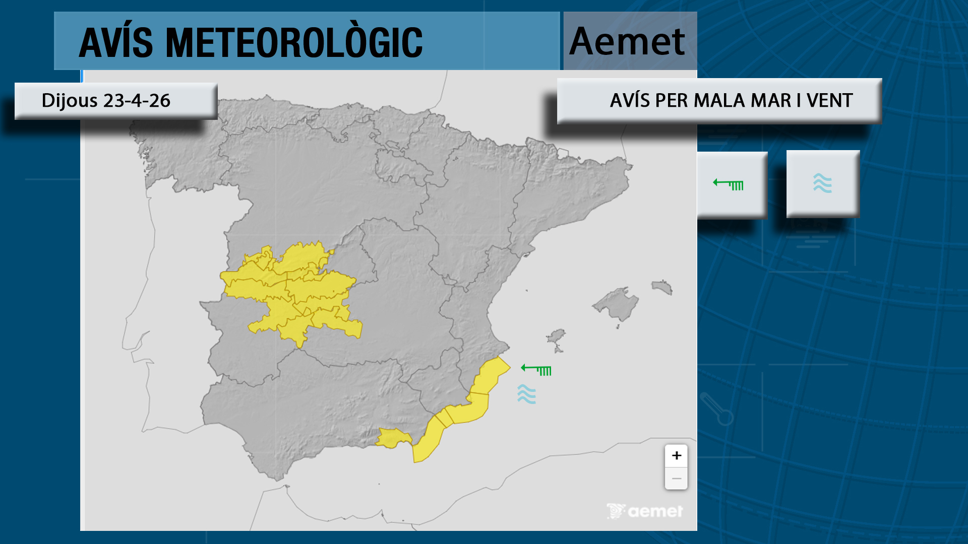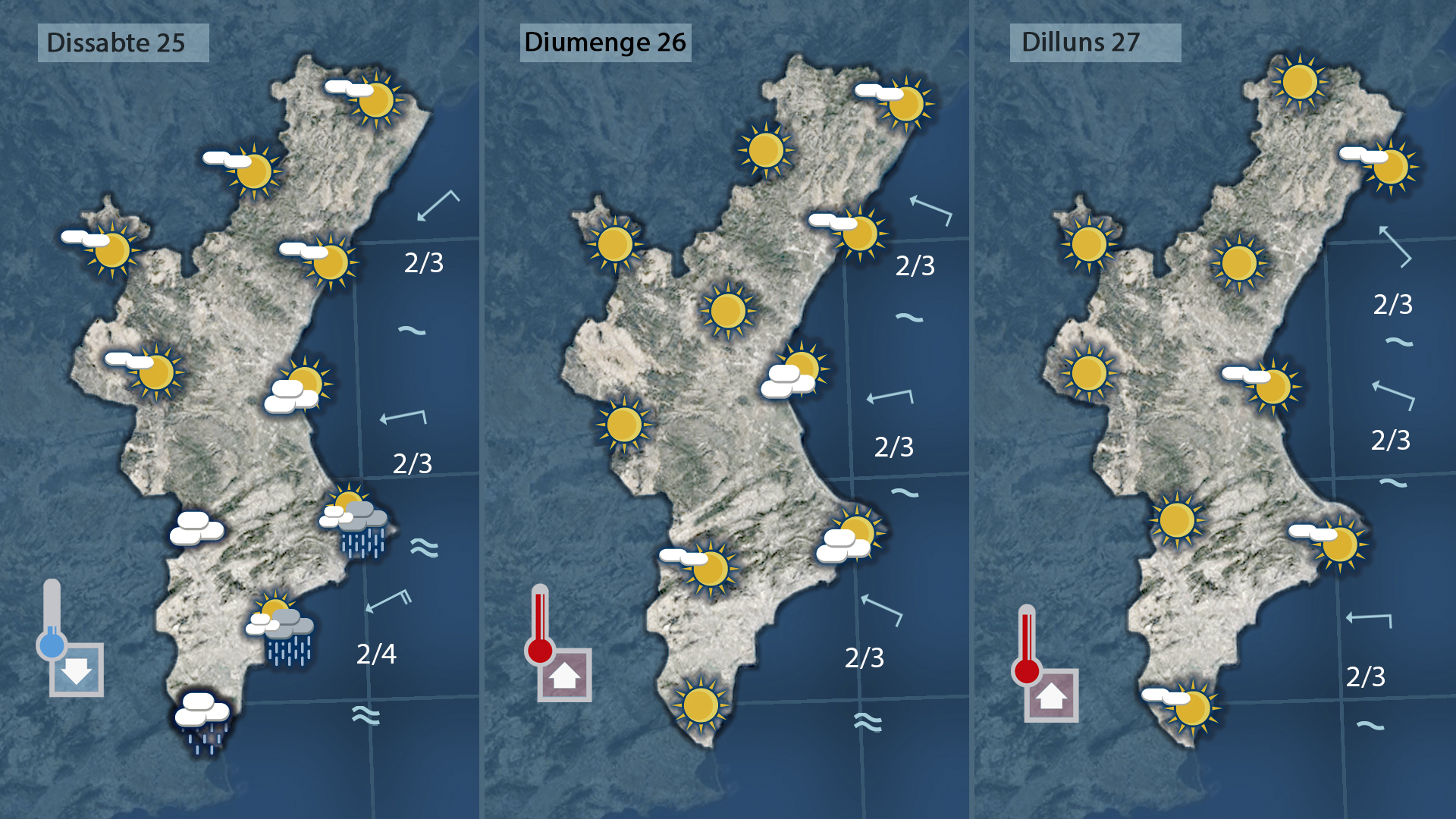 A més, augmenta la nuvolositat i la mar es presenta alterada al sud, amb avisos meteorològics per mala mar.