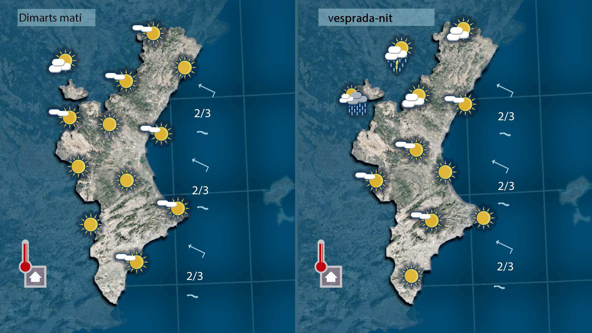 Dimarts es mantindrà la mateixa situació, amb sol al matí i nuvolades de vesprada, amb el dubte de si alguna podria derivar en tronada al nord.