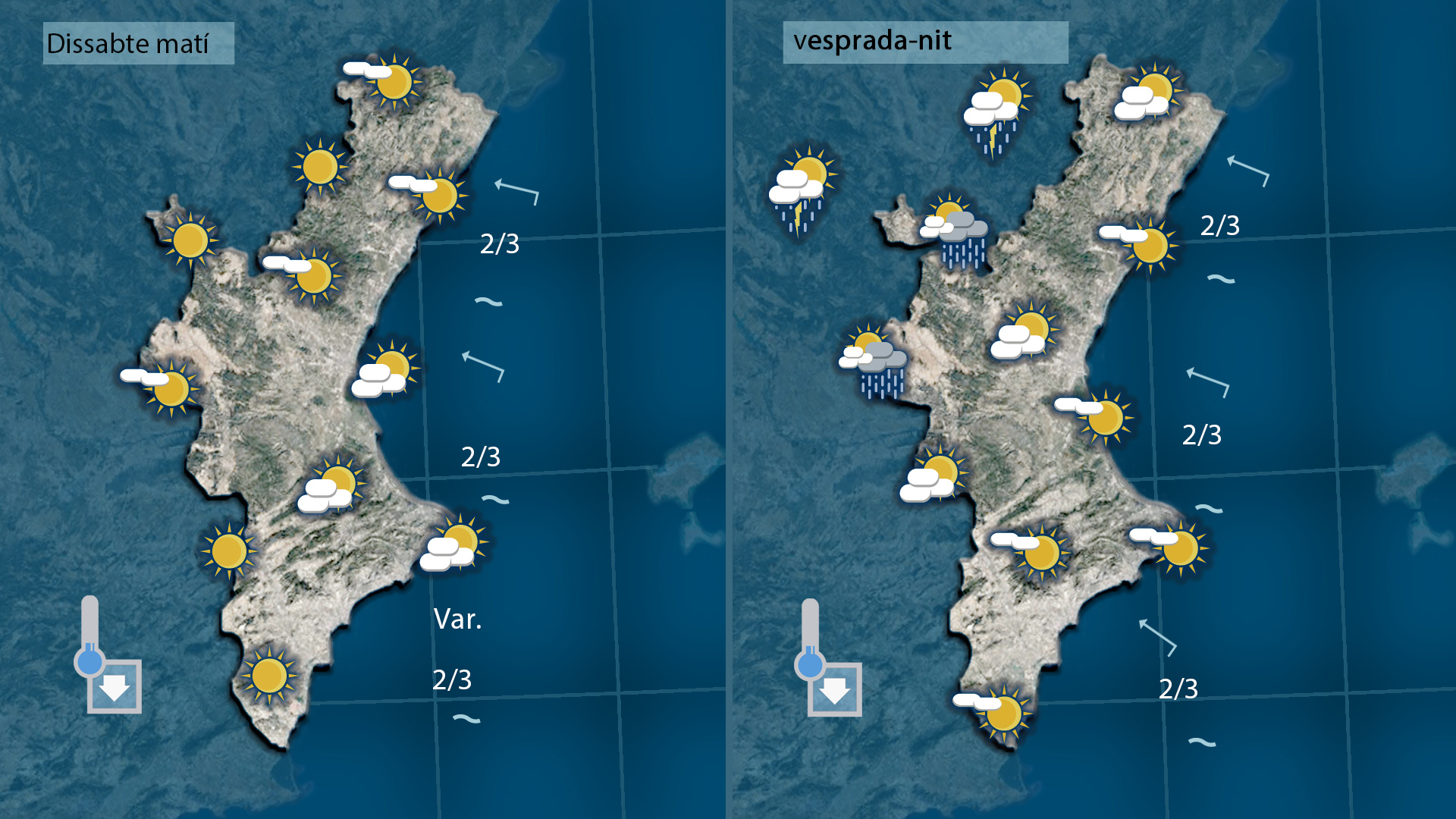 A les comarques centrals, dissabte començarà amb sol i temperatures encara elevades. Els núvols baixos es deixaran veure a primera i última hora, i a mesura que avance la vesprada, el front que creuarà la Península podrà deixar els primers ruixats irregulars. Diumenge serà un dia de transició, amb un descens tèrmic més notable i amb la possibilitat de tempestes que podran aparéixer de manera sobtada. Dilluns, amb l’entrada del gregal, la frescor s’imposarà i el panorama s’assemblarà més al que toca per a l’inici de la tardor.